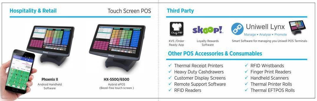 Uniwell’s embedded POS terminals are versatile, user friendly and robust. Uniwell Lynx back-office software, designed and supported in Australia, delivers an easy-to-use means of maintaining your POS and extracting much needed sales and management data.