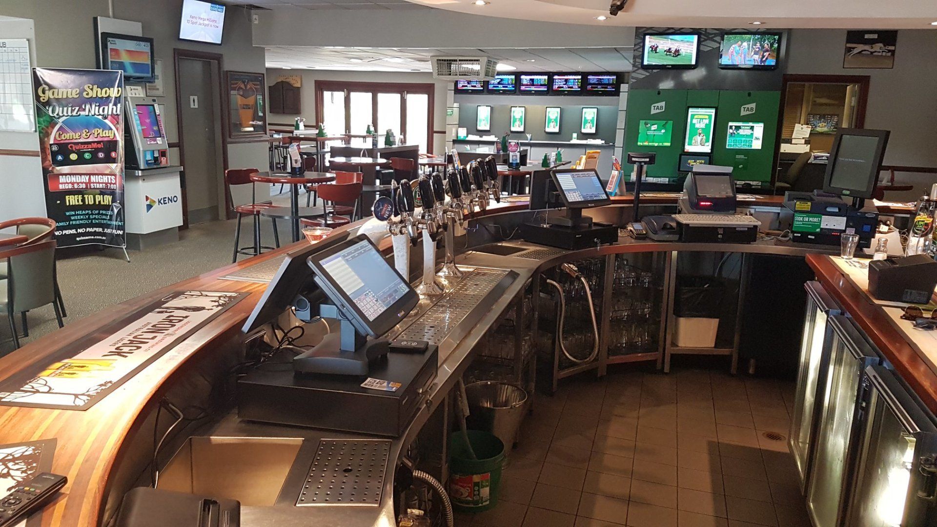 Across venue in the Sports TAB Bar, Main Bar and Bistro also Back of House Management Software Uni-Lynx full Stock Control Reporting Sales Analysis.