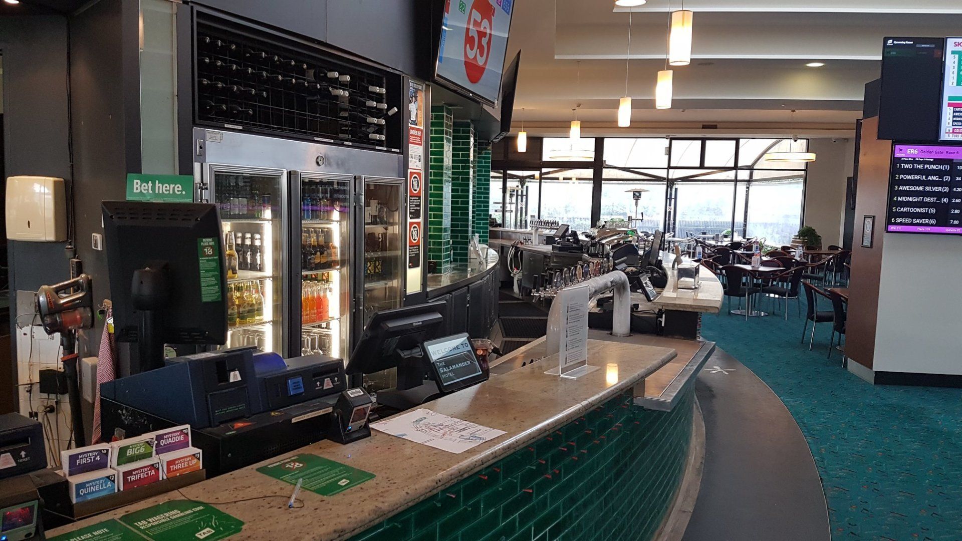 Across venue in the Sports TAB Bar, Main Bar, Gaming Bar, Bistro and Bottleshop.